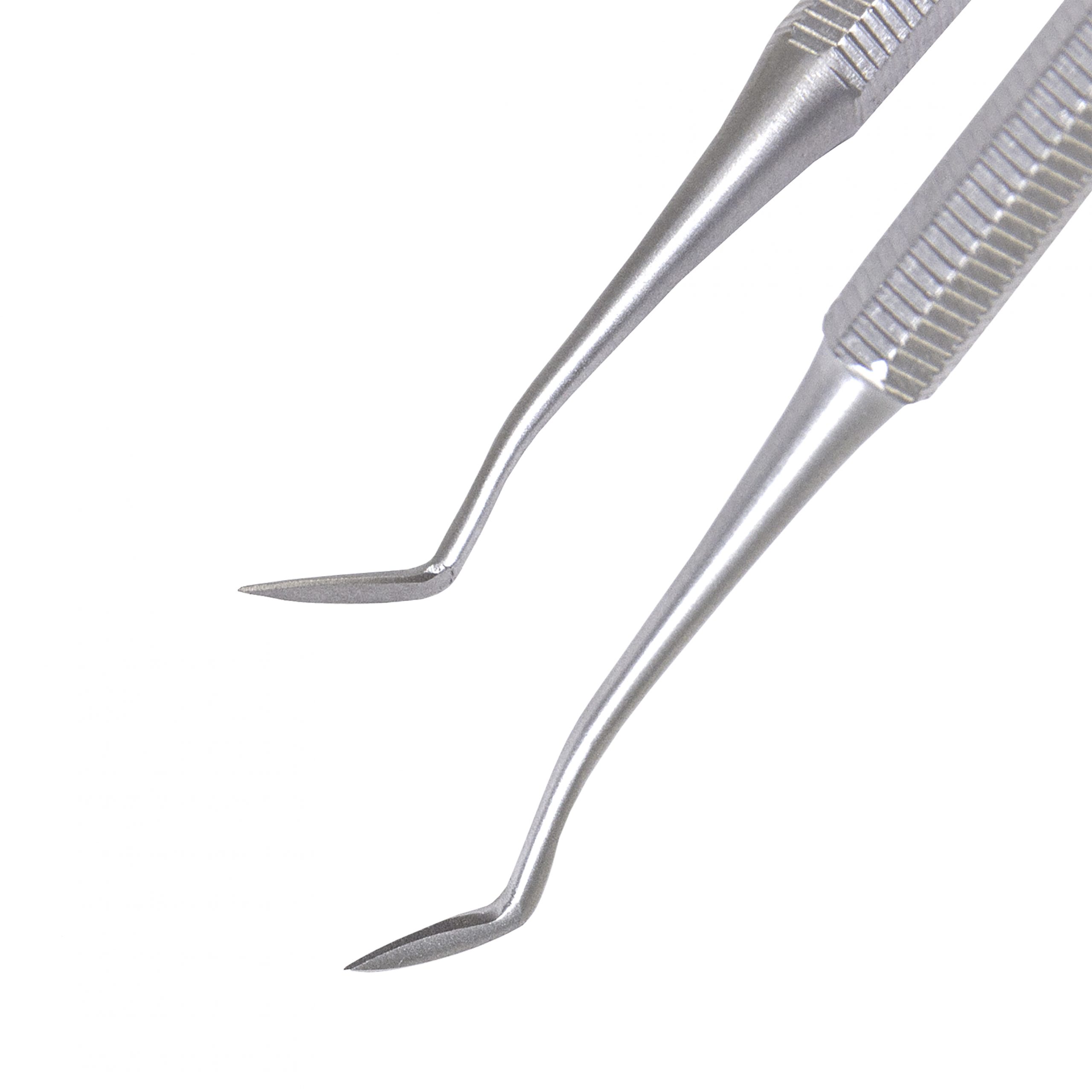 De instrumenten zijn uitgevoerd in mat staal, en geven geen hinderlijke licht reflecties tijdens het gebruik. Uiteraard zijn de instrumenten voorzien van een CE-logo en het logo voor eenmalig gebruik.